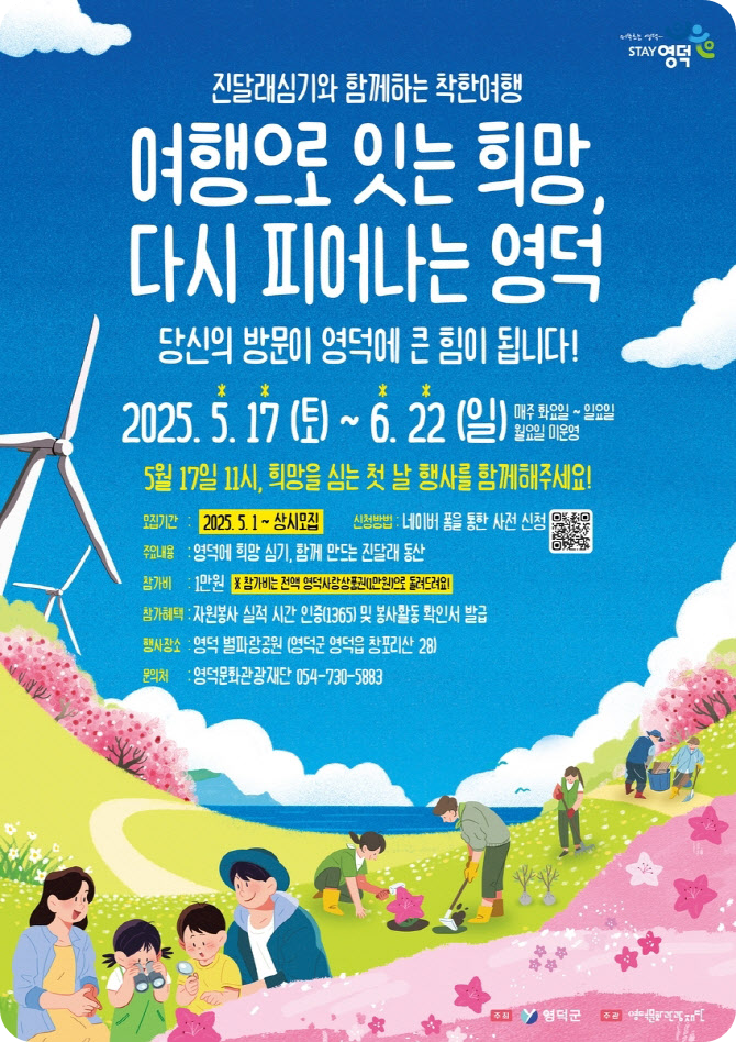 아름다운 영덕 별파랑공원에서 펼쳐지는 특별한 캠페인에 여러분을 초대합니다! 💖 산불 피해 지역에 희망의 진달래를 심고, 지역 경제도 살리는 의미 있는 여행에 동참하세요!